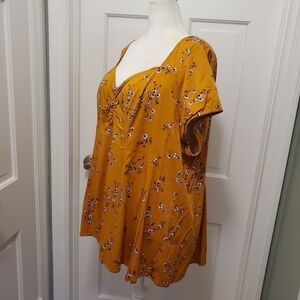 NWT Torrid Mustard In Color Floral Print BabyDoll Blouse Sizr 4X/26, Ret. $44.90