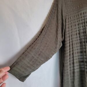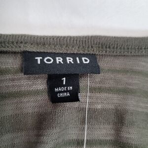 New with tags Torrid Olive Green 3/4 Sleeve Draped Open Front Cardigan Top. Women's size 1(1X). Semi sheer. Measurements are in photos.