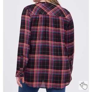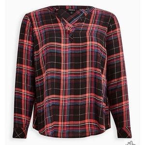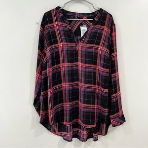 NWT Torrid Pink Black Plaid Georgette Hi Low PulloverLong Sleeve Blouse 2X