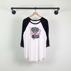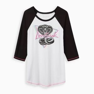 NWT Torrid Plus Size 3/4 Sleeve Baseball Tee In Lovesick Snake Black & White
