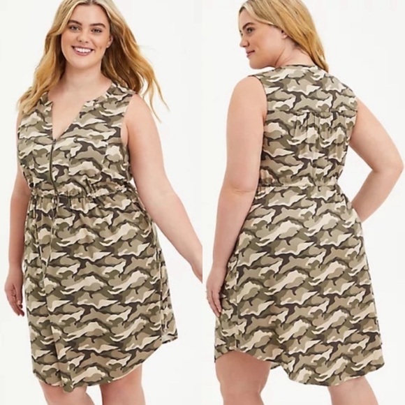 NWT Torrid Plus Size Camo Zip Front Sleeveless Shift Dress