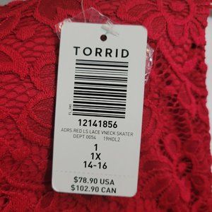 NWT Torrid Red Lace Skater Dress....Size: 14/16, Color: Red