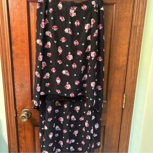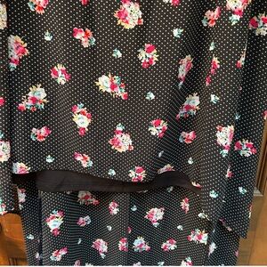 Elegant black skirt with a vibrant floral polka dot pattern. Perfect for any occasion. Super cute high low style. Purchased from another seller but it did not fit me.