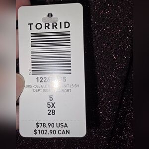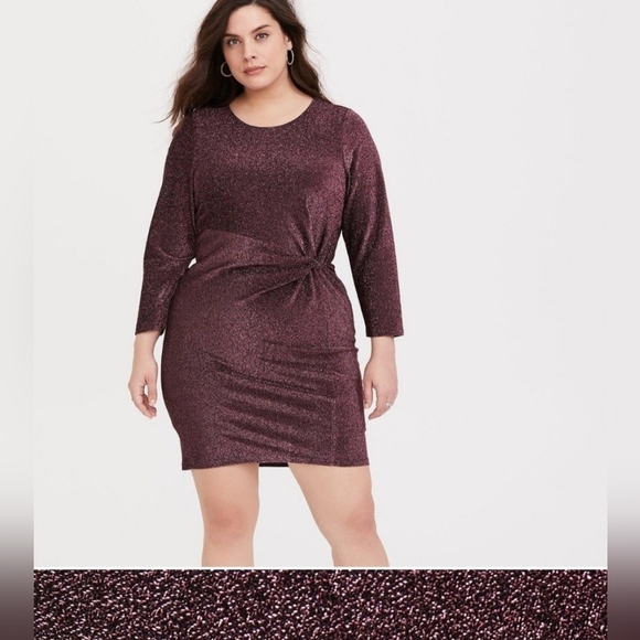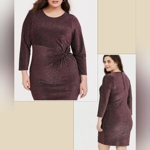 NWT Torrid Rose Gold Glitter Knotted Shift Midi Dress Stretch Plus Size 5X or 28