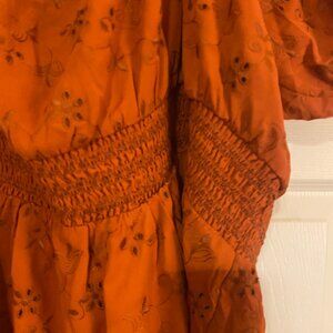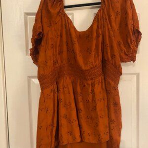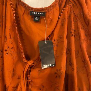 NWT Torrid Rust Red Brown Eyelet & Smocked Detail Babydoll Blouse size 4 or 4X,