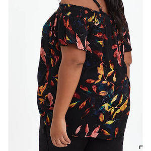 NWT Torrid SMOCKED COLD-SHOULDER BLOUSE - GAUZE LEAF BLACK Plus Size 2X
