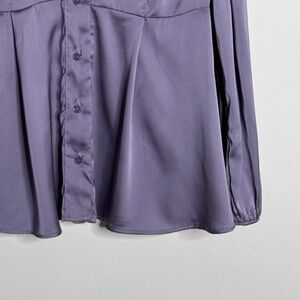 Style Tags: Torrid peplum satin button front top occasion blouse date night purple size 00