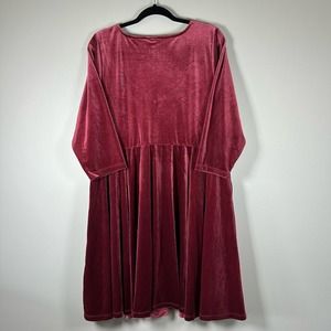 NWT Torrid Size 2 Berry Pink Velour 3/4 Sleeve Flowy Bottom Dress