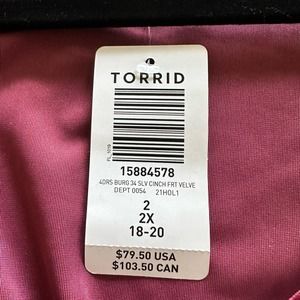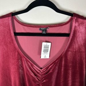 Keywords: Torrid, velvet dress, plus size dress, burgundy dress, ruched dress, v-neck dress, 3/4 sleeve dress, cocktail dress, party dress, holiday dress, womens dress, size 2X, new with tags