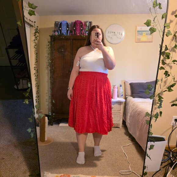 NWT new with tags Torrid Retro Chic size 2X red midi skirt. Eyelet, aline, pockets. In excellent condition.