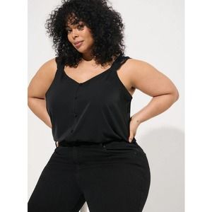 NWT! Torrid Studio Crepe de Chine Lace Trim Button Front Tank Black Lace 6x 30