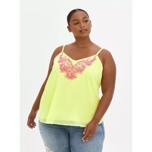 NWT Torrid Sunny Lime Sophie Chiffon Embroidered Lined Swing Cami Size Large