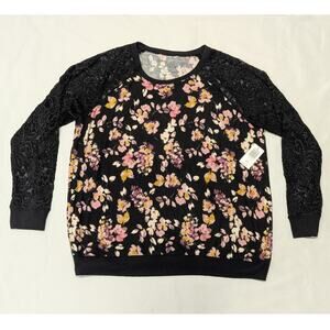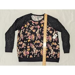 NWT Torrid Super Soft Plush Floral Black Raglan Lace Long Sleeve Sweater Size 2