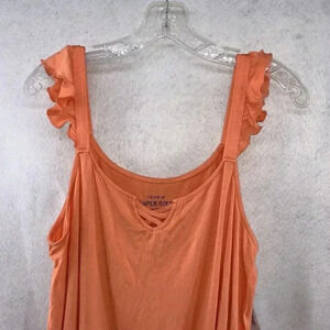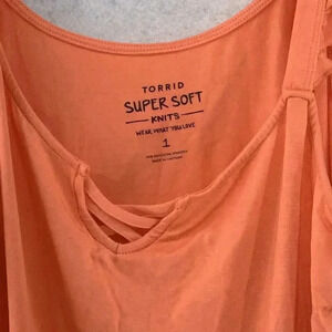 NWT Torrid Super Soft V-Neck Lace-Up Ruffle Tank Top Coral Orange Size 1 (14/16)