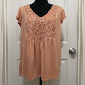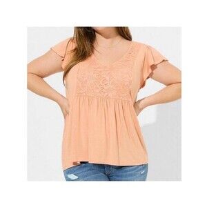 NWT Torrid Supersoft VNeck Lace Ruffle Tank Peach Bloom Flutter Sleeve Sz 00 M L