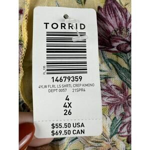 NWT Torrid Sz 4 Multicolor Floral Butterfly 3/4 Sleeves Open Front Kimono