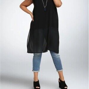 NWT Torrid Tunic Top Women 1X Black Sleeveless Chiffon Long Split Sheer Flowy