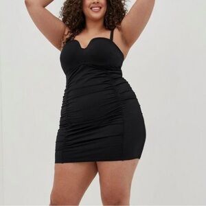 NWT Torrid Underwire Ruched Retro Mid Length Swimdress in Black