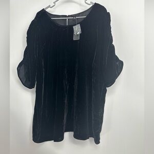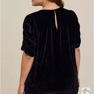 NWT Torrid Velvet Tunic Top Plus Size 4X Ruched Sleeve NWT In Black
