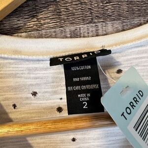 NWT Torrid White Destructed Babydoll Blouse Size 2x Short Sleeve Peplum Tee