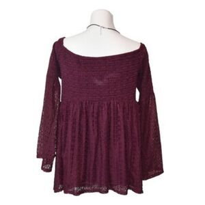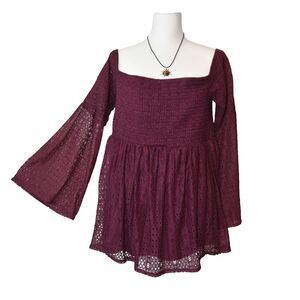 Torrid Wine Eyelet Lace Smocked Peasant Top Size 1 Boho Whimsigoth Romantic