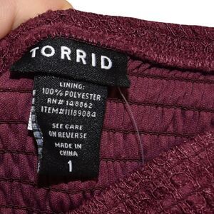 NWT Torrid Wine Eyelet Lace Smocked Peasant Top Sz 1 Boho Whimsigoth Romantic