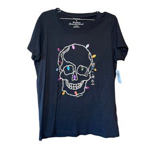 NWT Torrid Woman's Black Skull with Christmas Lights Graphic Tee Size Medium