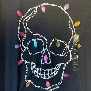 NWT Torrid Woman's Black Skull with Christmas Lights Graphic Tee