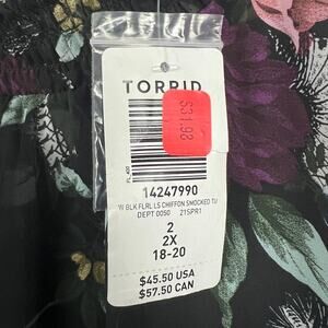 NWT Torrid Womens 2X Goth Whimsigoth Witchy Grunge Floral Skull Smocked Blouse