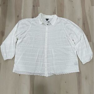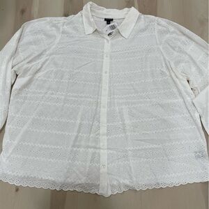 NWT Torrid Women's 4X (26) Plus Size Eyelet Button Up Long Sleeve White Cloud