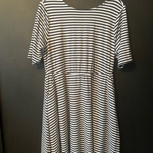 Torrid size 1 peek hole back skater dress! Black and white striped! Quarter length sleeve! It has POCKETS !!!!