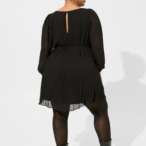 NWT Torrid Women's Mini Chiffon Pleated Dress Long Sleeve Crewneck Black Size 6X