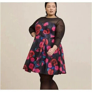 NWT Torrid Women’s Mini Scuba Illusion Neck Rose Floral Dress Multi Sz 3 (22/24)