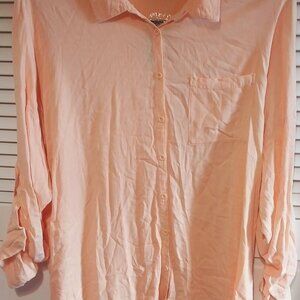 NWT Torrid Womens Peach Button-Up Blouse 2X 18-20 Plus Size 3/4 Sleeve Lightweig