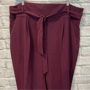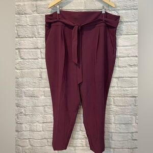 NWT Torrid Women's Size 20 Burgundy High Waisted Tie-Front Crop Pants. New with tags. Never worn. No holes, rips, snags, stains, pilling, peeling, fading or discoloration. Smoke free & pet friendly.