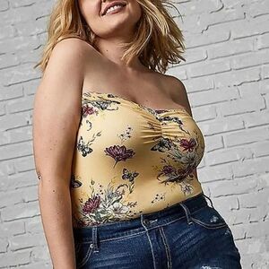 NWT Torrid Yellow & Butterfly Floral Sweetheart Foxy Tube Top Size 4 or 26 Plus