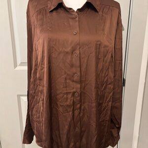 NEW WITH TAGS TORRID BLOUSE, cute brown classic button down lightweight and flowy