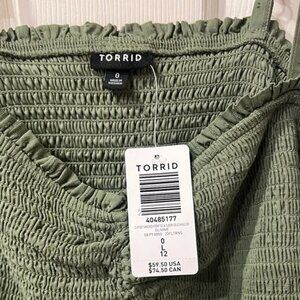Cute Torrid brand Green off the shoulder blouse with lace detailing on sleeves, size 0X/L, NWT