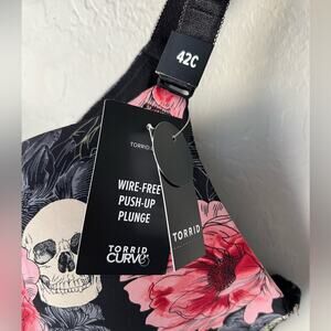 NWT Torrid wire free push up plunge bra skull and roses pattern 42C