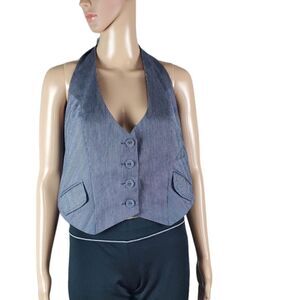 (CC) NWT Torrid Blue & White Pinstriped Halter vest, no flaws, Size 0 which is equalnto a large
