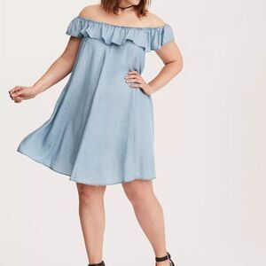 NWT Torrid Denim Off Shoulder Trapeze Dress, size 2 (2X | 18-20), 100% Tencel
