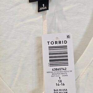 NWT- Torrid-Heritage Cotton V-Neck Ruffle Tee