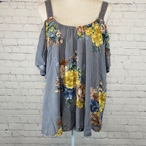 (NWT) Torrid Stone Grey Floral Cold Shoulder Blouse