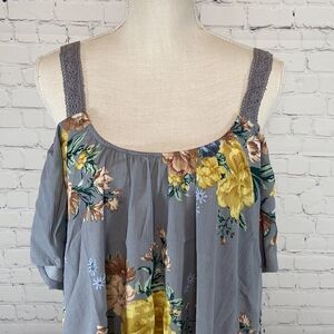 (NWT) Torrid Stone Grey Floral Cold Shoulder