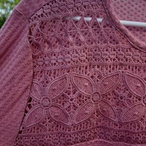 Torrid top, plus size blouse, crochet lace top, pink long sleeve shirt, waffle knit, boho style, romantic casual, feminine top, new with tags, size 2X, foxglove, fall fashion, soft knit