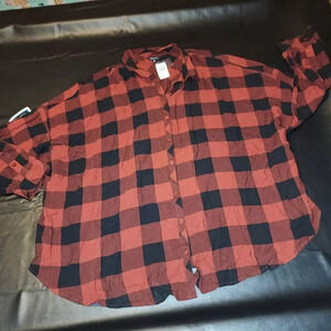 NWT Torrid Womens Red Black Plaid Esther Drop Shoulder Top Shirt Blouse 5 5X New