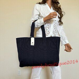 NWT Tory Burch 156476 Canvas Tote Warm Night Midnight Blue Navy Large Logo Bag