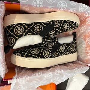 NWT Tory Burch Black and Cream Monogram Sneakers