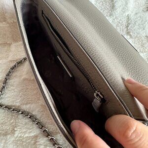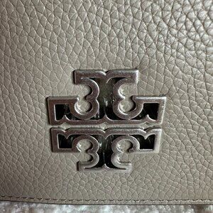 NWT! Tory Burch Britten Adjustable Shoulder Bag Pebble Leather Grey Silver 67292