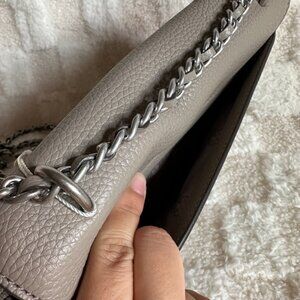 Convertible chain and leather interwoven shoulder strap with 22.2" (56.5cm) drop: leather shoulder guard for comfort